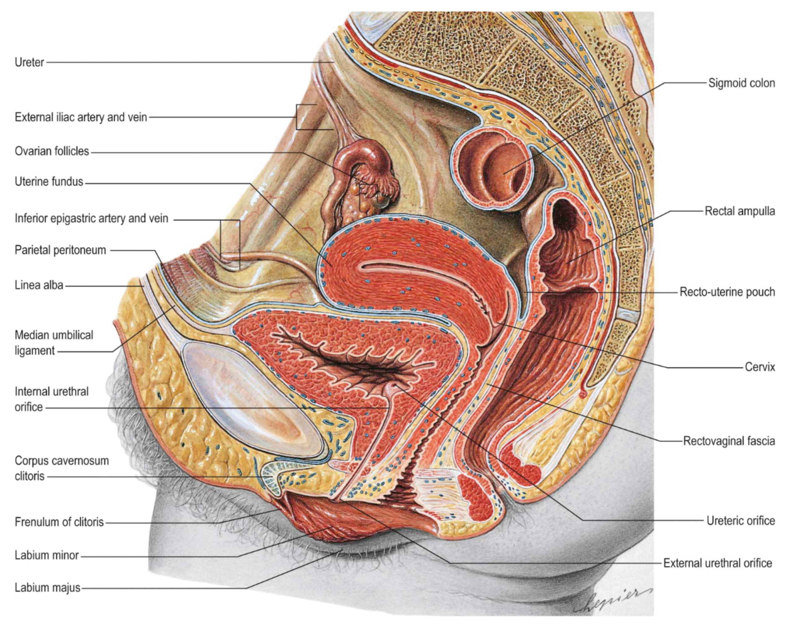 Der Anatom Jean-Marc Bourgery und der Zeichner Nicolas-Henri Jacob veröffentlichten in der ersten Hälfte des 19. Jahrhunderts den opulenten Anatomieatlas Traité de l’anatomie de l’homme. Er gilt noch heute als Höhepunkt der anatomischen Darstellung. Diese realistische Lithografie daraus zeigt Klitoris mit ihrer venösen Verbindung zu den Vorhofbulben und die äußeren weiblichen Geschlechtsorgane.